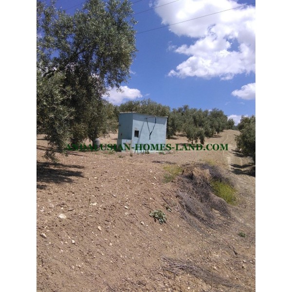 El terreno consta de 17 fanegas de tierra de olivar. 4 fanegas son de marteños, el resto de hojiblanco de unos 25 años, así como olivar viejo. La finca dispone de pozo propio y sistema de riego. El terreno está un poco inclinado, parte la finca el camino y un arroyo.